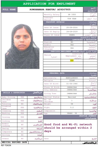 سبق لها العمل في السعودية 2سنة